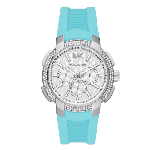 Michael Kors Turquoise Silicone Strap Silver Dial Chronograph Quartz Watch for Ladies - MK7246