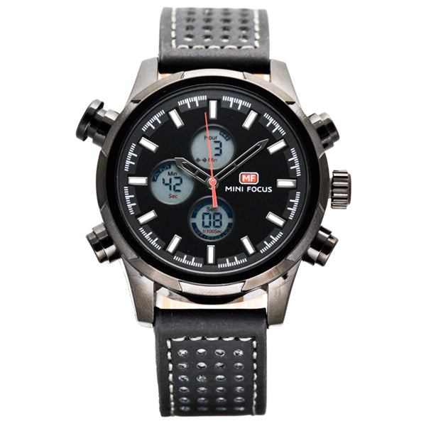 Add to WishlistMini Focus Black Leather Strap Black Dial Chronograph Quartz Watch for Gents - MF0066G-03