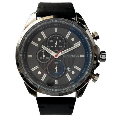 Add to WishlistMini Focus Black Leather Strap Black Dial Chronograph Quartz Watch for Gents - MF0080G-02