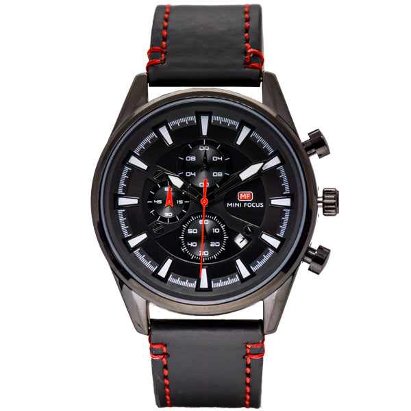 Add to WishlistMini Focus Black Leather Strap Black Dial Chronograph Quartz Watch for Gents - MF0083G-02