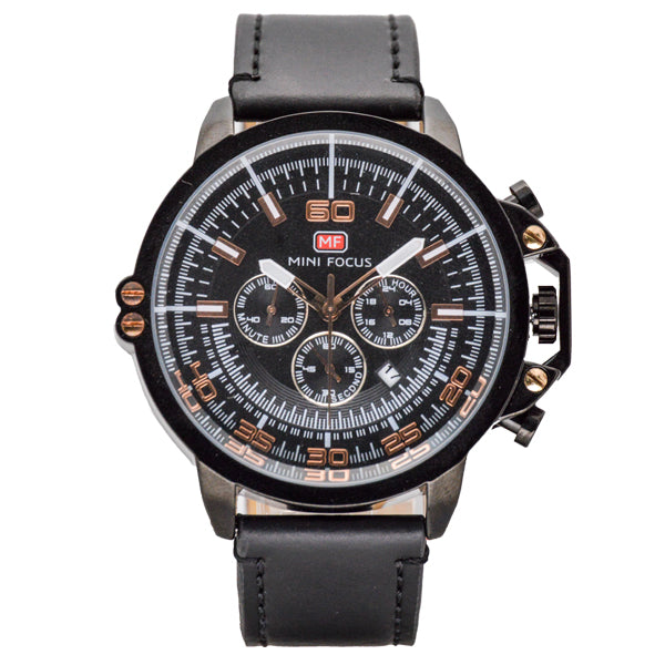 Add to WishlistMini Focus Black Leather Strap Black Dial Chronograph Quartz Watch for Gents - MF0095G-02
