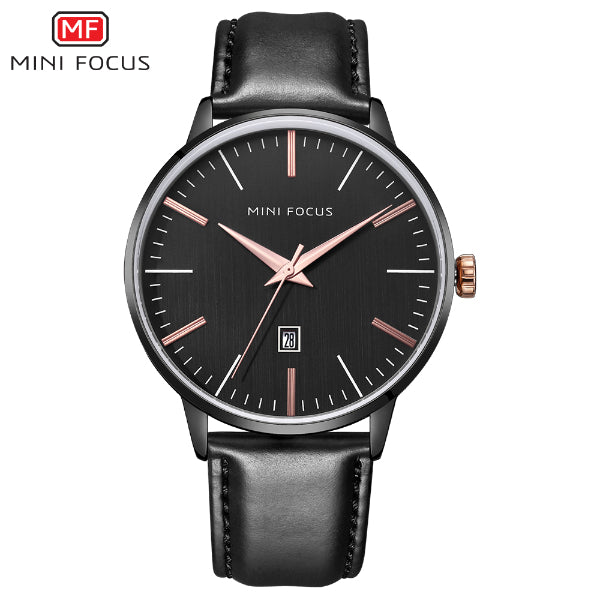 Add to WishlistMini Focus Black Leather Strap Black Dial Quartz Watch for Gents - MF0115G-03