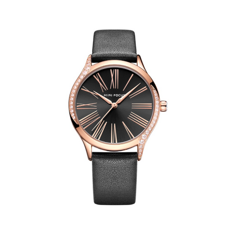 Add to WishlistMini Focus Black Leather Strap Black Dial Quartz Watch for Ladies - MF0259L-10