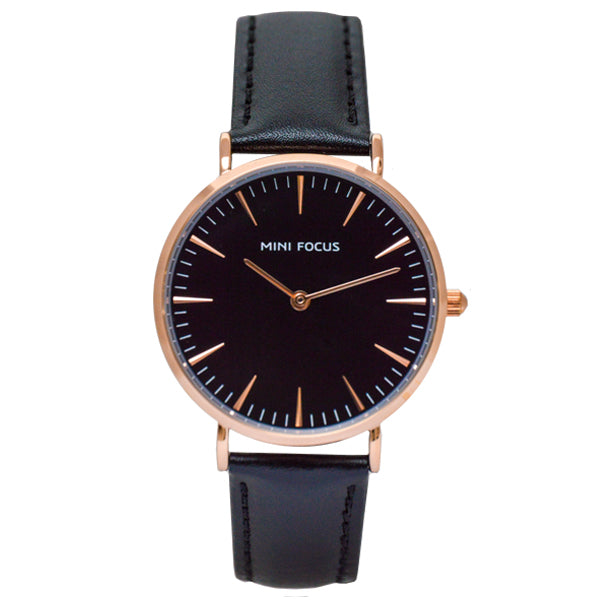 Add to WishlistMini Focus Black Leather Strap Black Dial Quartz Watch for Ladies - MF0318L-05