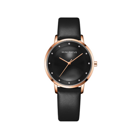 Add to WishlistMini Focus Black Leather Strap Black Dial Quartz Watch for Ladies - MF0332L-11