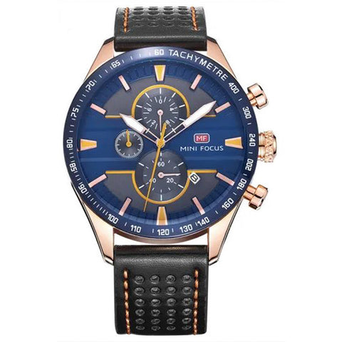 Add to WishlistMini Focus Black Leather Strap Blue Dial Chronograph Quartz Watch for Gents - MF0002G-02