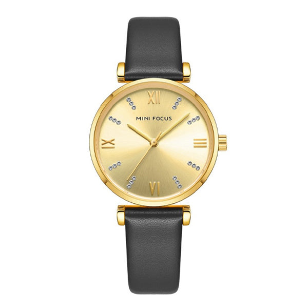 Add to WishlistMini Focus Black Leather Strap Gold Dial Quartz Watch for Ladies - MF0335L-07