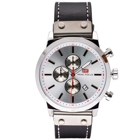 Add to WishlistMini Focus Black Leather Strap Silver Dial Chronograph Quartz Watch for Gents - MF0110G-01