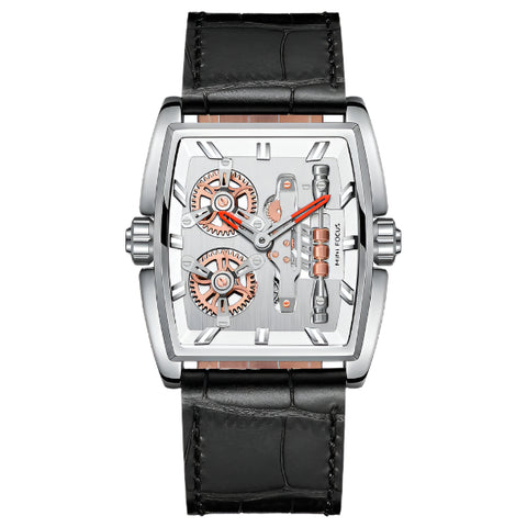 Mini Focus Black Leather Strap Silver Dial Quartz Watch for Gents - MF0322G-01