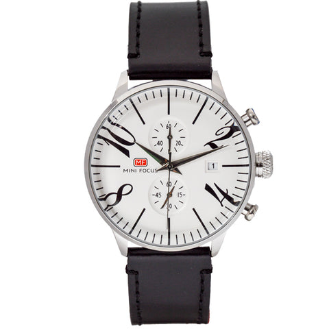 Add to WishlistMini Focus Black Leather Strap White Dial Chronograph Quartz Watch for Gents - MF0135G-05