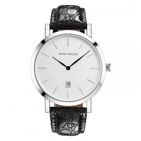 Add to WishlistMini Focus Black Leather Strap White Dial Quartz Watch for Gents - MF0108G-01