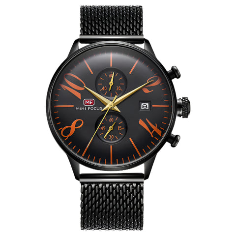 Add to WishlistMini Focus Black Mesh Bracelet Black Dial Chronograph Quartz Watch for Gents - MF0135G-08