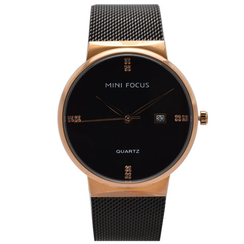 Mini Focus Black Mesh Bracelet Black Dial Quartz Watch for Gents - MF0181G-02