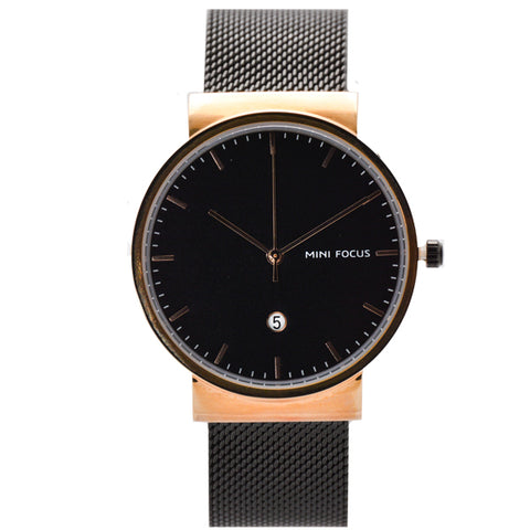 Mini Focus Black Mesh Bracelet Black Dial Quartz Watch for Gents - MF0184G-01