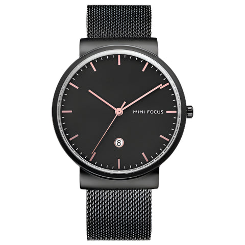 Mini Focus Black Mesh Bracelet Black Dial Quartz Watch for Gents - MF0184G-03