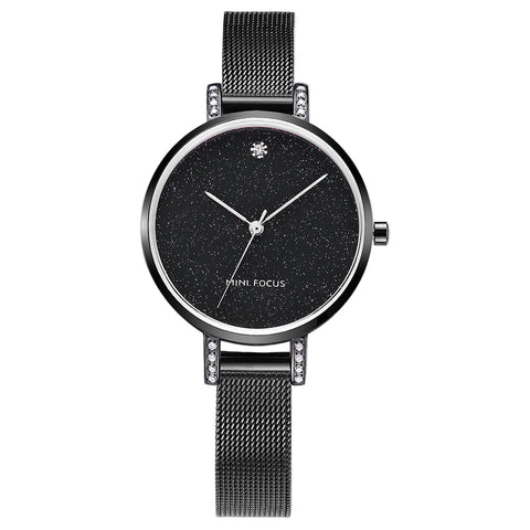 Mini Focus Black Mesh Bracelet Black Dial Quartz Watch for Ladies - MF0160L-04