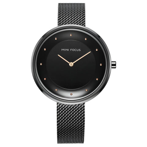 Mini Focus Black Mesh Bracelet Black Dial Quartz Watch for Ladies - MF0179L-04