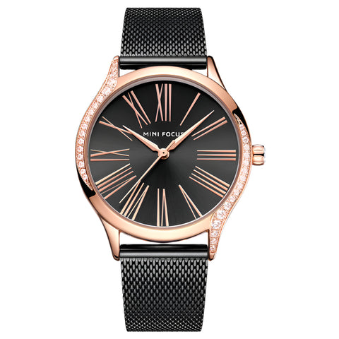 Mini Focus Black Mesh Bracelet Black Dial Quartz Watch for Ladies - MF0259L-03