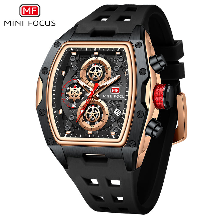 Mini Focus Black Silicone Strap Black Dial Chronograph Quartz Watch for Gents - MF0473G-01