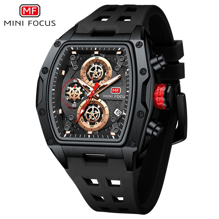 Mini Focus Black Silicone Strap Black Dial Chronograph Quartz Watch for Gents - MF0473G-05
