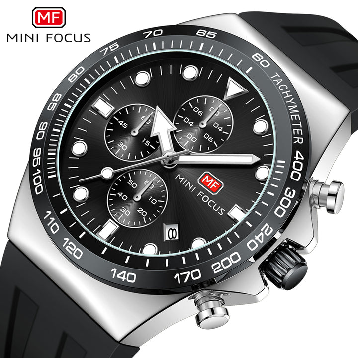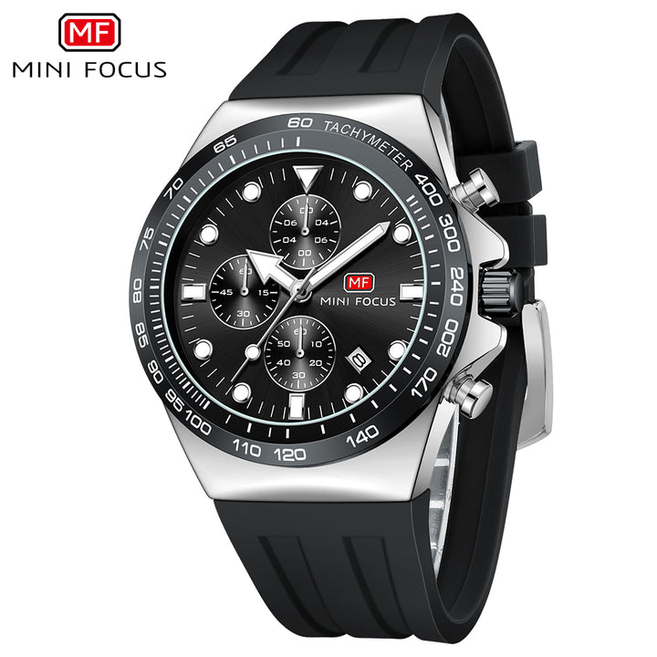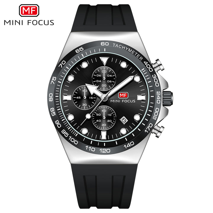 Mini Focus Black Silicone Strap Black Dial Chronograph Quartz Watch for Gents - MF0488G-01