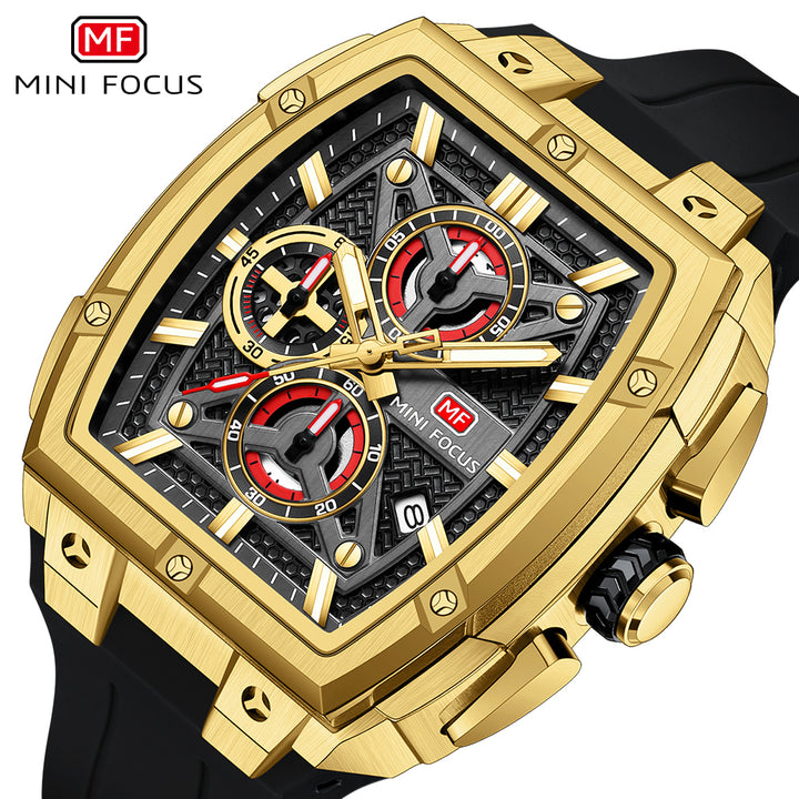 Mini Focus Black Silicone Strap Black Dial Chronograph Quartz Watch for Gents - MF0602G-03
