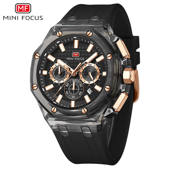 Mini Focus Black Silicone Strap Black Dial Quartz Watch for Gents - MF0616G-02