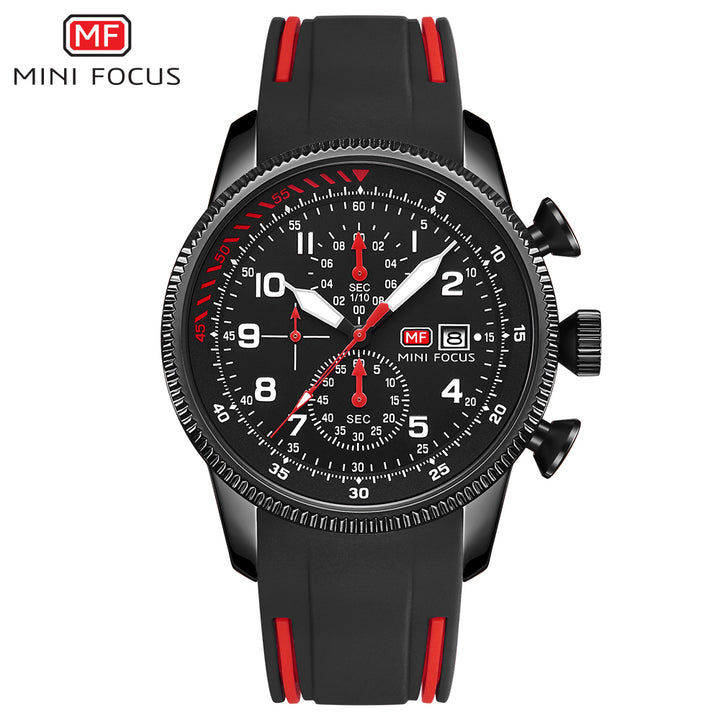 Add to WishlistMini Focus Black Silicone Strap Strap Black Dial Chronograph Quartz Watch for Gents - MF0379G-04