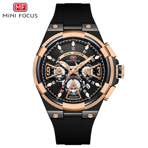 Add to WishlistMini Focus Black Silicone Strap Strap Black Dial Chronograph Quartz Watch for Gents - MF0402G-01