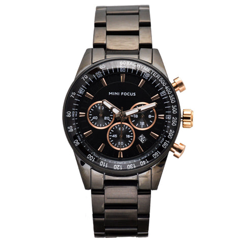 Mini Focus Black Stainless Steel Black Dial Chronograph Quartz Watch for Gents - MF0187G-04