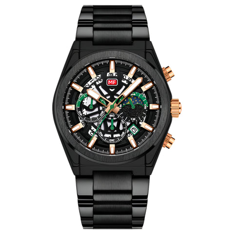 Mini Focus Black Stainless Steel Black Dial Chronograph Quartz Watch for Gents - MF0339G-05