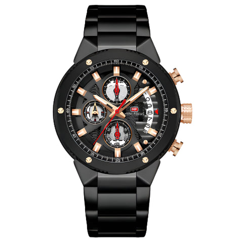 Add to WishlistMini Focus Black Stainless Steel Black Dial Chronograph Quartz Watch for Gents - MF0397G-05
