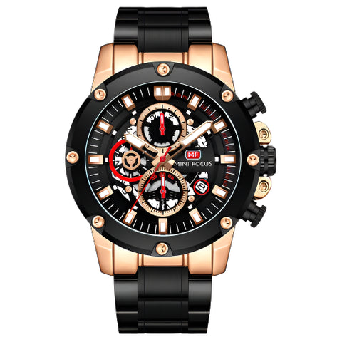 Add to WishlistMini Focus Black Stainless Steel Black Dial Chronograph Quartz Watch for Gents - MF0398G-03