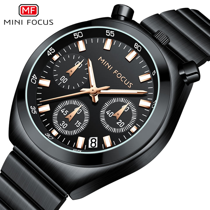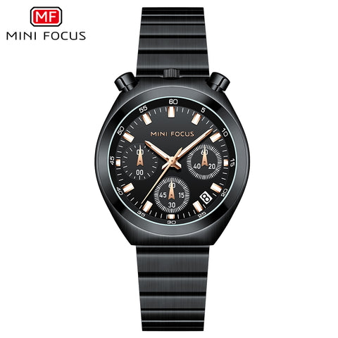 Mini Focus Black Stainless Steel Black Dial Chronograph Quartz Watch for Gents - MF0491L-05