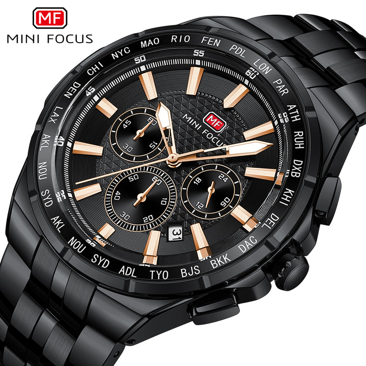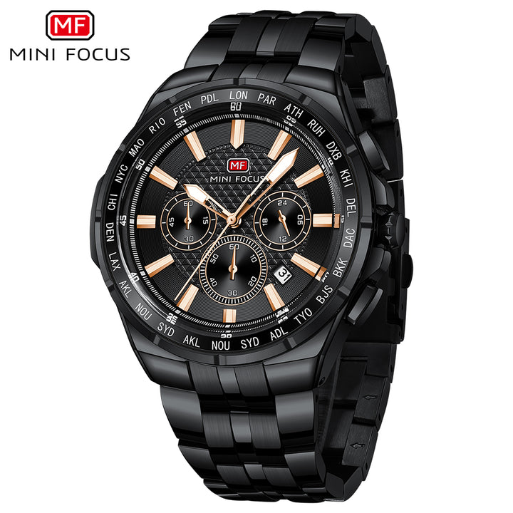Mini Focus Black Stainless Steel Black Dial Chronograph Quartz Watch for Gents - MF0613G-05