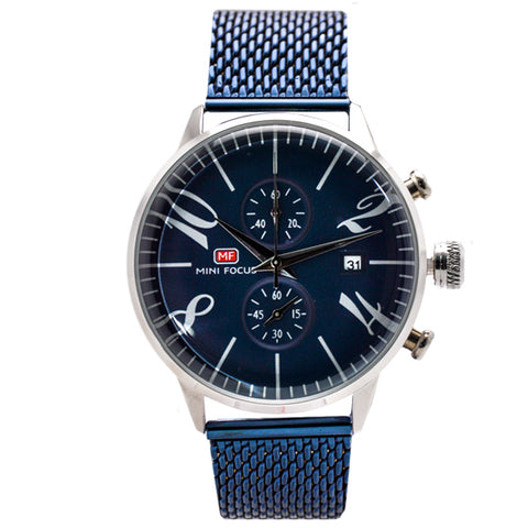 Mini Focus Blue Mesh Bracelet Blue Dial Chronograph Quartz Watch for Gents - MF0135G-11