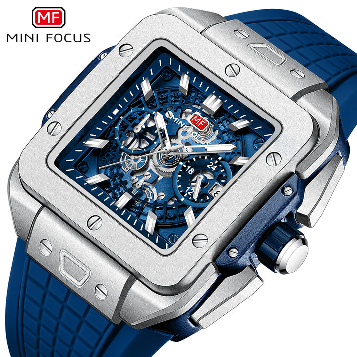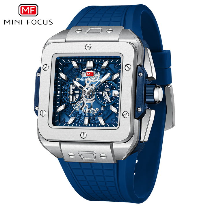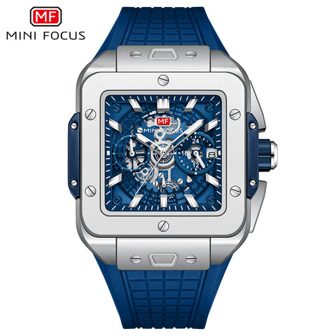 Mini Focus Blue Silicone Strap Blue Dial Chronograph Quartz Watch for Gents - MF0475G-02