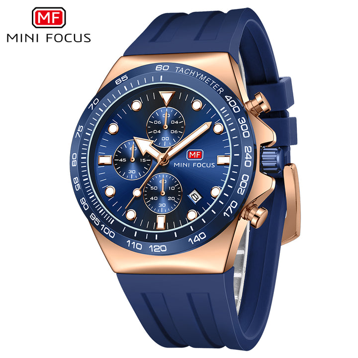 Mini Focus Blue Silicone Strap Blue Dial Chronograph Quartz Watch for Gents - MF0488G-06