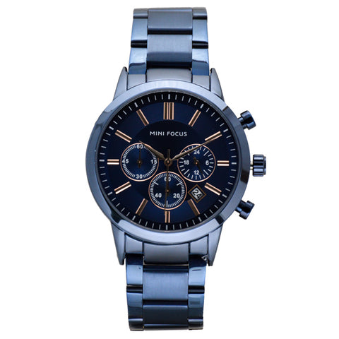 Mini Focus Blue Stainless Steel Blue Dial Chronograph Quartz Watch for Gents - MF0188G-04