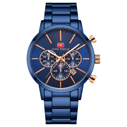 Mini Focus Blue Stainless Steel Blue Dial Chronograph Quartz Watch for Gents - MF0294G-03