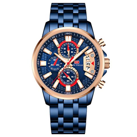 Mini Focus Blue Stainless Steel Blue Dial Chronograph Quartz Watch for Gents - MF0352G-03