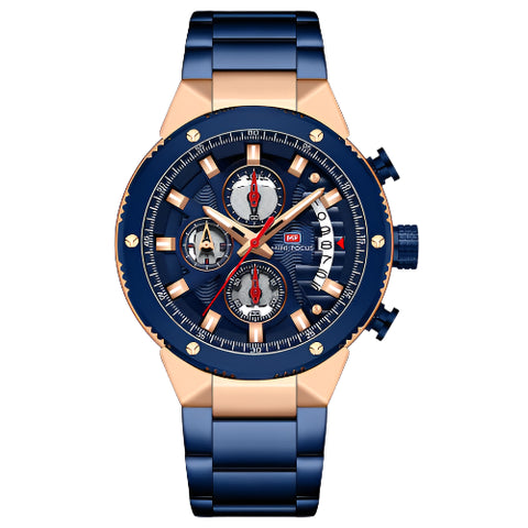 Mini Focus Blue Stainless Steel Blue Dial Chronograph Quartz Watch for Gents - MF0397G-03