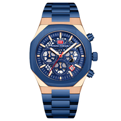 Mini Focus Blue Stainless Steel Blue Dial Chronograph Quartz Watch for Gents - MF0411G-03