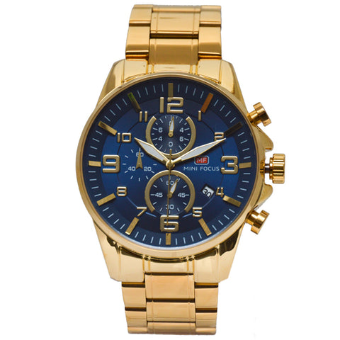 Add to WishlistMini Focus Gold Stainless Steel Blue Dial Chronograph Quartz Watch for Gents - MF0278G-04