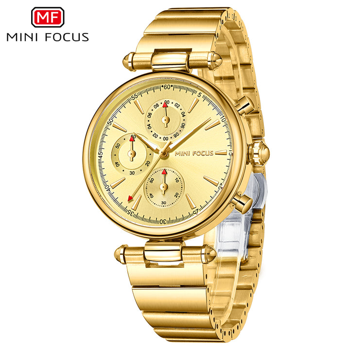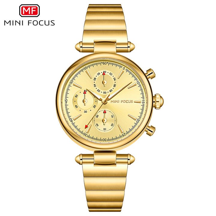 Mini Focus Gold Stainless Steel Gold Dial Chronograph Quartz Watch for Ladies - MF0494L-04