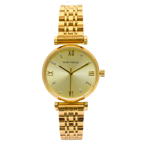 Add to WishlistMini Focus Gold Stainless Steel Gold Dial Quartz Watch for Ladies - MF0335L-02