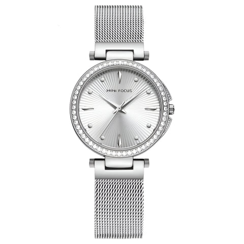 Mini Focus Gold Stainless Steel Mesh Silver Dial Quartz Watch for Ladies - MF0194L-02