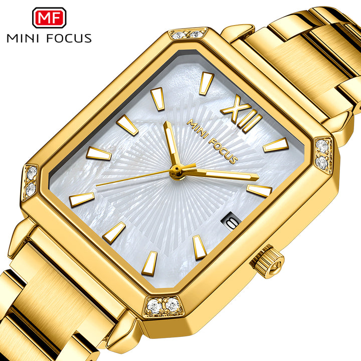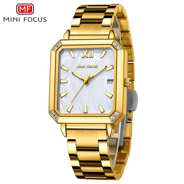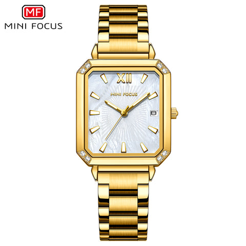 Mini Focus Gold Stainless Steel Mother-of-Pearl Dial Quartz Watch for Ladies - MF0472L-03