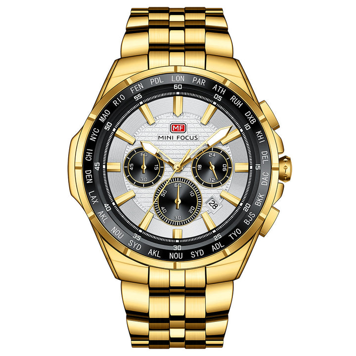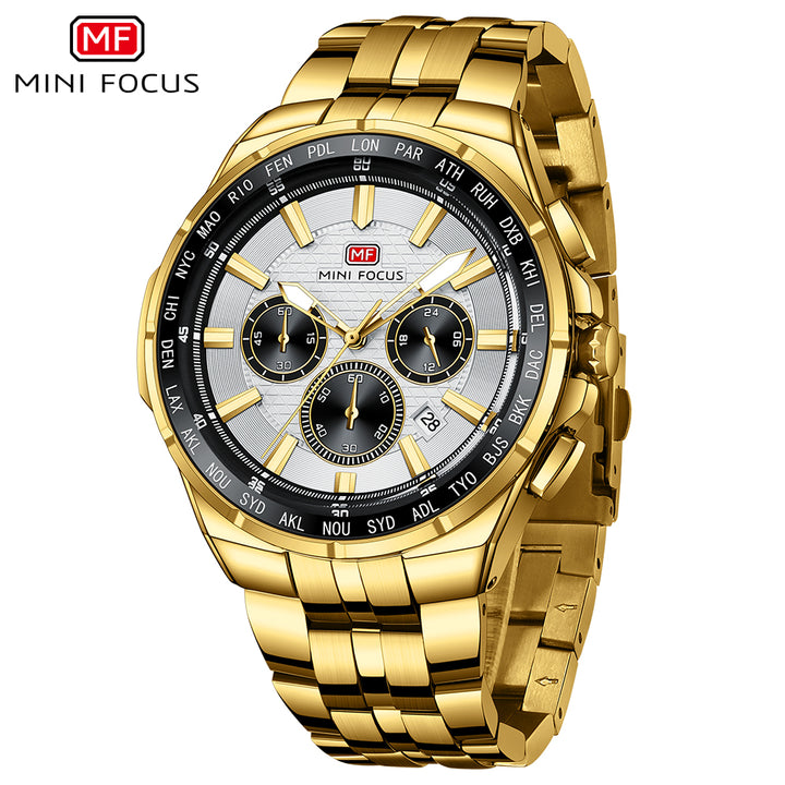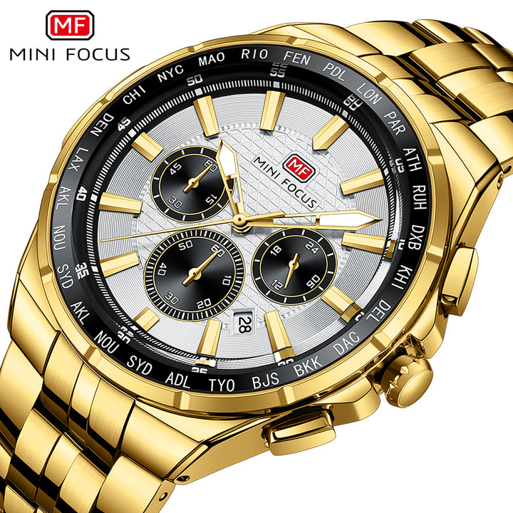 Mini Focus Gold Stainless Steel Silver Dial Chronograph Quartz Watch for Gents - MF0613G-04