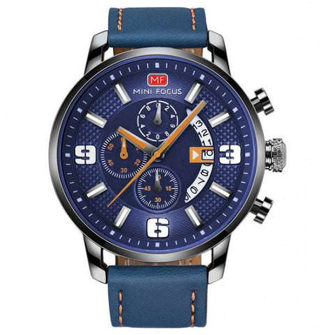 Add to WishlistMini Focus Grey Leather Strap Blue Dial Chronograph Quartz Watch for Gents - MF0025G-03